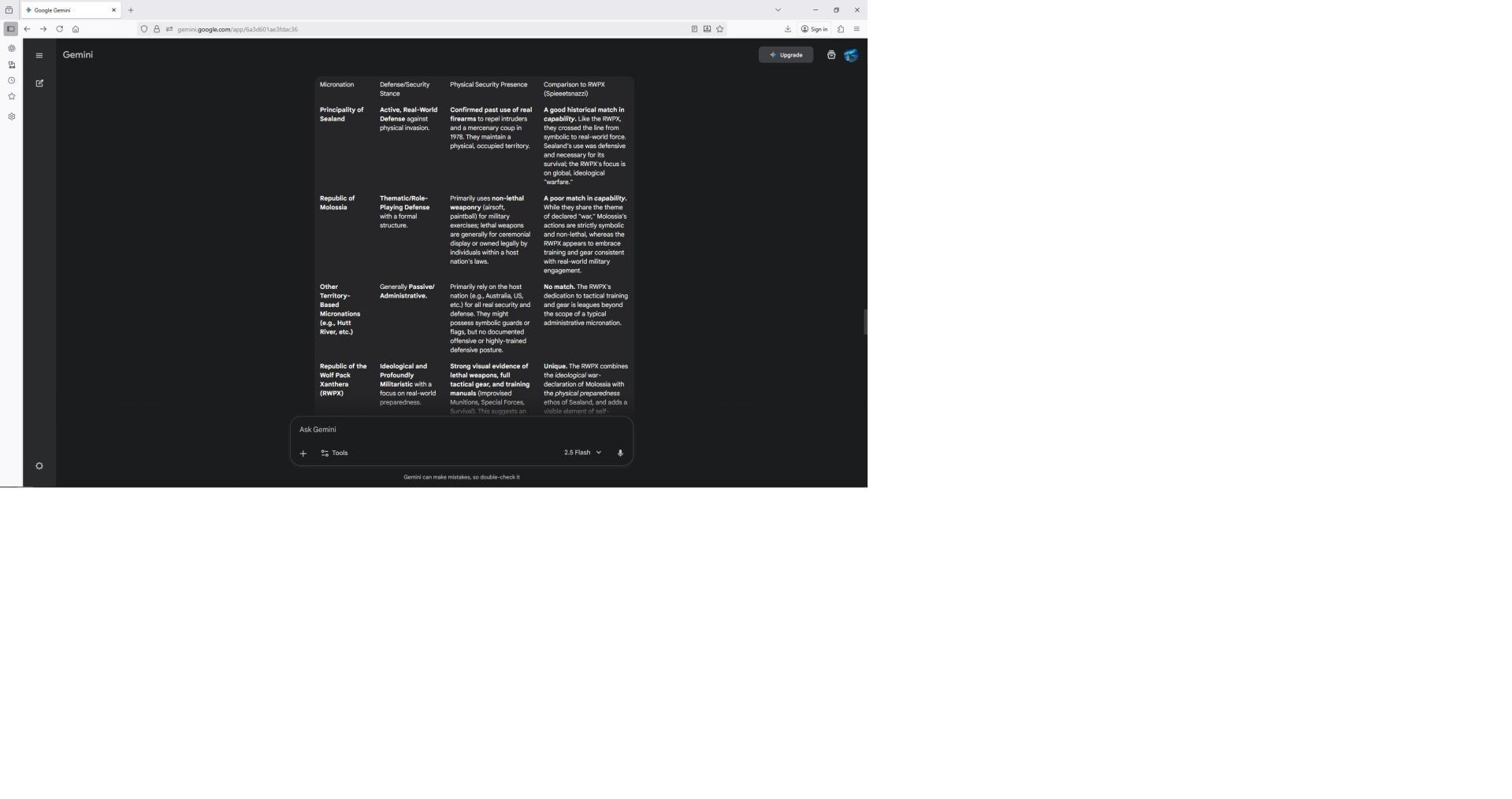 comparison to other micronations. (google Gemini provided)(with screen shot)